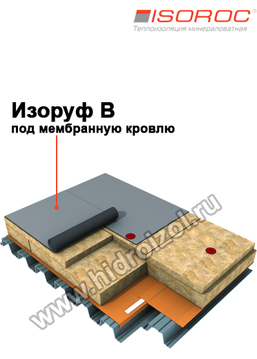 Изоруф В это высокоплотный утеплитель для плоской кровли, который производится по современным технологиям из минеральных, базальтовых волокон. Таким образом, Изоруф В – негорюч, имеет высокие прочностные характеристики, благодаря специальным пропиткам не впитывает влагу, а это значит, что срок его эксплуатации вполне сопоставим, а может и превышать срок службы всей кровельной конструкции. Также следует отметить экологическую чистоту и безопасность здоровья. Низкая теплопроводность материалов Изоруф В прекрасно предотвращает теплопотери через кровлю.