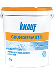 Грунтовка для стен Кнауф Грундирмиттель поверхностная. Сухие строительные смеси и грунтовки позволяют подготовить поверхность к последующей отделке, предотвращают свертывание отделочного слоя. Грунтовка Кнауф Грундирмиттель представляет собой дисперсионную смесь.