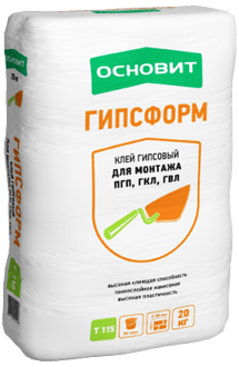 Клей гипсовый Основит Гипсформ Т-115 серого цвета - это универсальная сухая монтажная клеевая смесь, позволяющая получить тонкий клеевой шов. Предназначается для различных монтажных работ внутри сооружений: