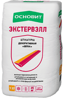 Декоративная штукатурка Основит Экстервэлл Шуба – это представляет собой сухую смесь, которая в готовом виде являет собой пластичную консистенцию. Основной состав данного вида штукатурки: цемент, фракционная мраморная крошка, гипс с различными химическими компонентами. Экстервэлл Шуба предназначен для отделки внутри помещений и снаружи сооружений: