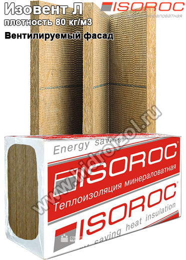 Изовент Л толщиной 50 мм - минераловатный утеплитель на основе горных пород. Используется для вент фасада, прикрепляется к стене специальными крепежами, дальше фасад облицовывается оцинкованными панелями различного цвета, где между теплоизоляционным плитами и облицовкой делают специальный промежуток. Такой пробел обеспечивает движение воздуха, так отводится лишнюю влагу с поверхности теплоизоляционного материала. Для экономии денежных средств применяйте для нижнего слоя