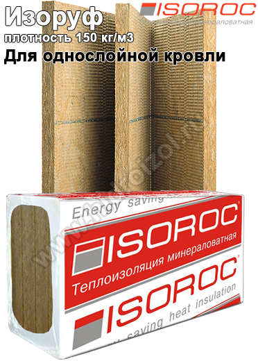 Минераловатный утеплитель Изоруф толщиной 100 мм и плотностью 150 кг/м3 - применяется на плоской кровли в один слой для гаражей, промышленных зданий, складов и частных домов с плоской кровлей эксплуатируемых и не эксплуатируемых. Быстрее монтируется и эффективнее контролируется качество укладки. Так же применяется при двухслойном утеплении, где нижним слоем используется утеплитель
